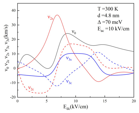 - Lei, X.L. Current suppression and harmonic generation by intense terahertz fields in semiconductor superlattices. J. Appl. Phys. 1997, 82, 718–721. [Google Scholar] [CrossRef]