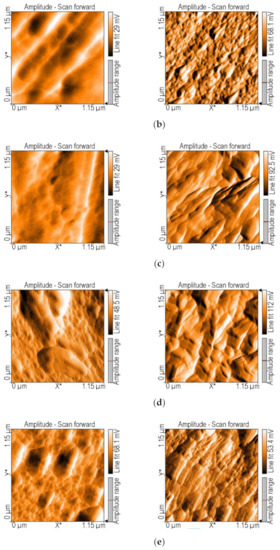 Using the Nanosurf®EasyScan 2 software for samples scanned in noncontact mode (scan size of 1.15 μm × 1.15 μm; points/line = 1024; time/line = 1 s) and the equations reported in [36], nano-roughness was calculated for each sample.