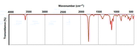 In Figure 8, the vibrational spectrum is presented as resulting from DFT modeling under Spartan’14. The ATR-FTIR spectrum of A-IONPs aqueous liquid solution is presented in Figure 9 as registered experimentally.