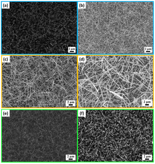 - Huang, W.J.; Yang, S.M.; Liao, T.T.; Lu, K.C. Synthesis of morphology-improved single-crystalline iron silicide nanowires with enhanced physical characteristics. CrystEngComm 2021, 23, 3270–3275. [Google Scholar] [CrossRef]