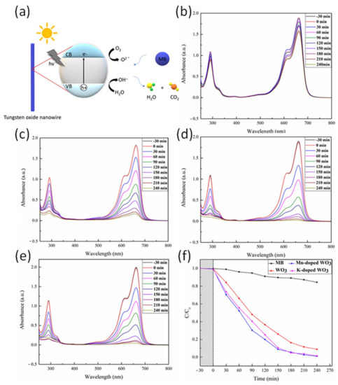 - Chandrasekaran, S.; Zhang, P.X.; Peng, F.; Bowen, C.; Huo, J.; Deng, L.B. Tailoring the geometric and electronic structure of tungsten oxide with manganese or vanadium doping toward highly efficient electrochemical and photoelectrochemical water splitting. J. Mater. Chem. A 2019, 7, 6161–6172. [Google Scholar] [CrossRef]