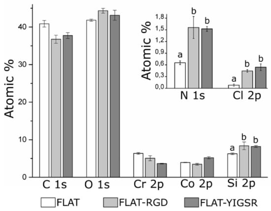 3.2. Biofunctionalization of CoCr and Surface Characterization