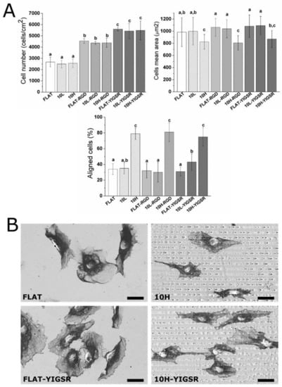 - Liliensiek, S.J.; Wood, J.A.; Yong, J.; Auerbach, R.; Nealey, P.F.; Murphy, C.J. Modulation of Human Vascular Endo-thelial Cell Behaviors by Nanotopographic Cues. Biomaterials 2010, 31, 5418–5426. [Google Scholar] [CrossRef] [PubMed]