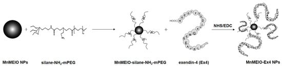 2.2. Synthesis of MnMEIO and MnMEIO-Ex4 NPs