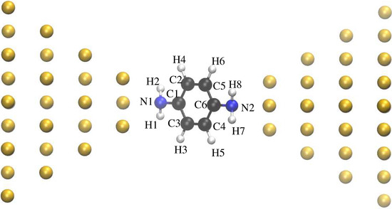 - Quek, S.Y.; Venkataraman, L.; Choi, H.J.; Louie, S.G.; Hybertsen, M.S.; Neaton, J.B. Amine–Gold Linked Single-Molecule Circuits: Experiment and Theory. Nano Lett. 2007, 7, 3477–3482. [Google Scholar] [CrossRef]