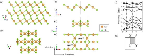 The bulk and monolayer β-AuSe in the calculation are shown in Figure 1a–e. The structural parameters are in accordance with earlier research [24,32,33].