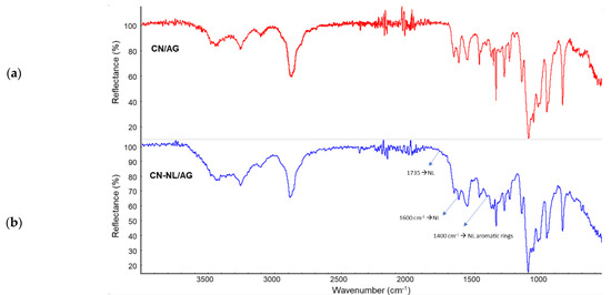 ATR infrared characterization of: (a) CN/AG; (b) CN-NL/AG.