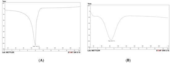 Differential scanning colorimetry of pure-drug and methotrexate-loaded formulations: (A) Pure drug; (B) Methotrexate-loaded formulation.