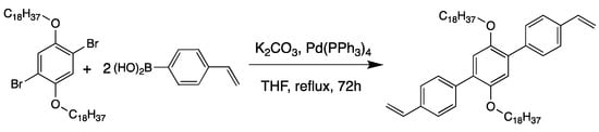 Synthesis of 1,4-bis(4′-vinylphenyl)-2,5-bis(octadecyloxy)benzene.