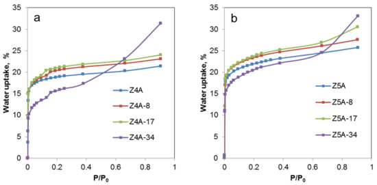 3.2.2. Water Vapor Adsorption Isotherms