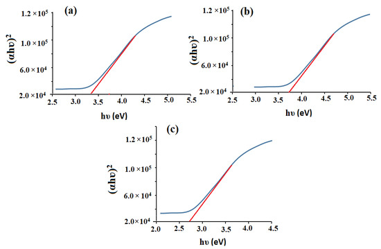 The produced bandgaps of the metal oxide nanoparticles were determined obeying the formula: