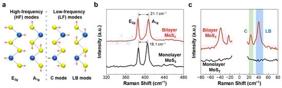 - Puretzky, A.A.; Liang, L.; Li, X.; Xiao, K.; Wang, K.; Mahjouri-Samani, M.; Basile, L.; Idrobo, J.C.; Sumpter, B.G.; Meunier, V.; et al. Low-frequency Raman fingerprints of two-dimensional metal dichalcogenide layer stacking configurations. ACS Nano 2015, 9, 6333–6342. [Google Scholar] [CrossRef]