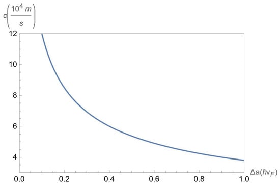 In Figure 8, we plot the sound velocity versus the gap for chosen parameter , interlayer separations for chosen concentrations and of A and B excitons, respectively. According to Figure 8, the sound velocity c is a decreasing function of .