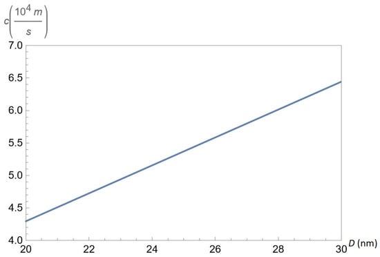 In Figure 9, we show the sound velocity as a function of the interlayer separation D for hopping parameter and gap , for fixed concentrations and of A and B excitons, respectively. According to Figure 9, the sound velocity c is an increasing function of D.