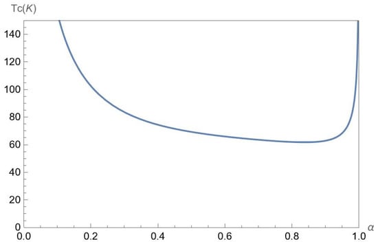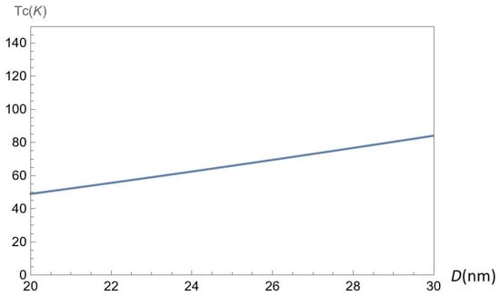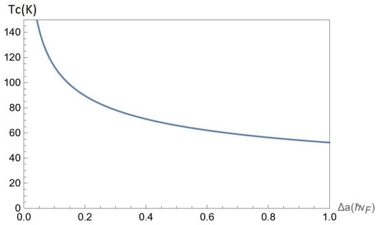In Figure 13, we demonstrate the mean-field phase transition critical temperature as a function of the interlayer separation D for chosen parameter and gap , at the fixed concentrations and of A and B excitons, respectively. According to Figure 13, the critical temperature is an increasing function of D.
