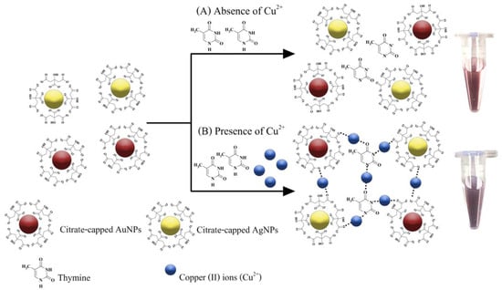 Thongkam, T.; Apilux, A.; Tusai, T.; Parnklang, T.; Kladsomboon, S. Thy-AuNP-AgNP Hybrid Systems for Colorimetric Determination of Copper (II) Ions Using UV-Vis Spectroscopy and Smartphone-Based Detection. Nanomaterials 2022, 12, 1449. https://doi.org/10.3390/nano12091449
