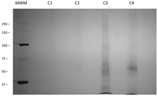 Finally, 10% SDS–PAGE was carried out, and the proteins were visualized using the ProteoSilver™ Silver Stain Kit (Sigma–Aldrich) to demonstrate the presence of proteins in the sample.