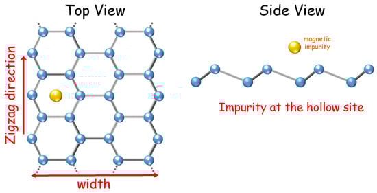 - Diniz, G.S.; Luiz, G.I.; Latgé, A.; Vernek, E. From Kondo to local singlet state in graphene nanoribbons with magnetic impurities. Phys. Rev. B 2018, 97, 115444. [Google Scholar] [CrossRef] [Green Version]