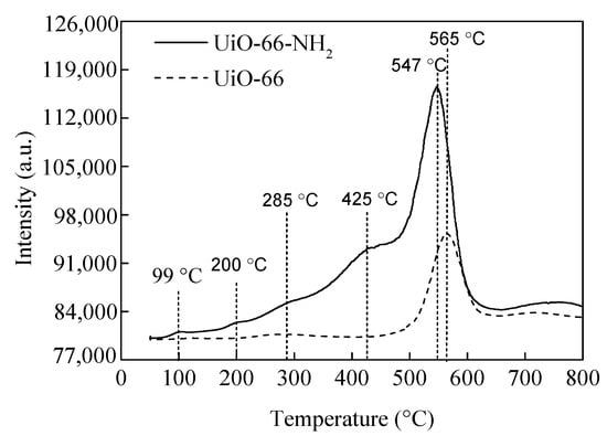 CO2-TPD profiles for UiO-66-NH2 and UiO-66.