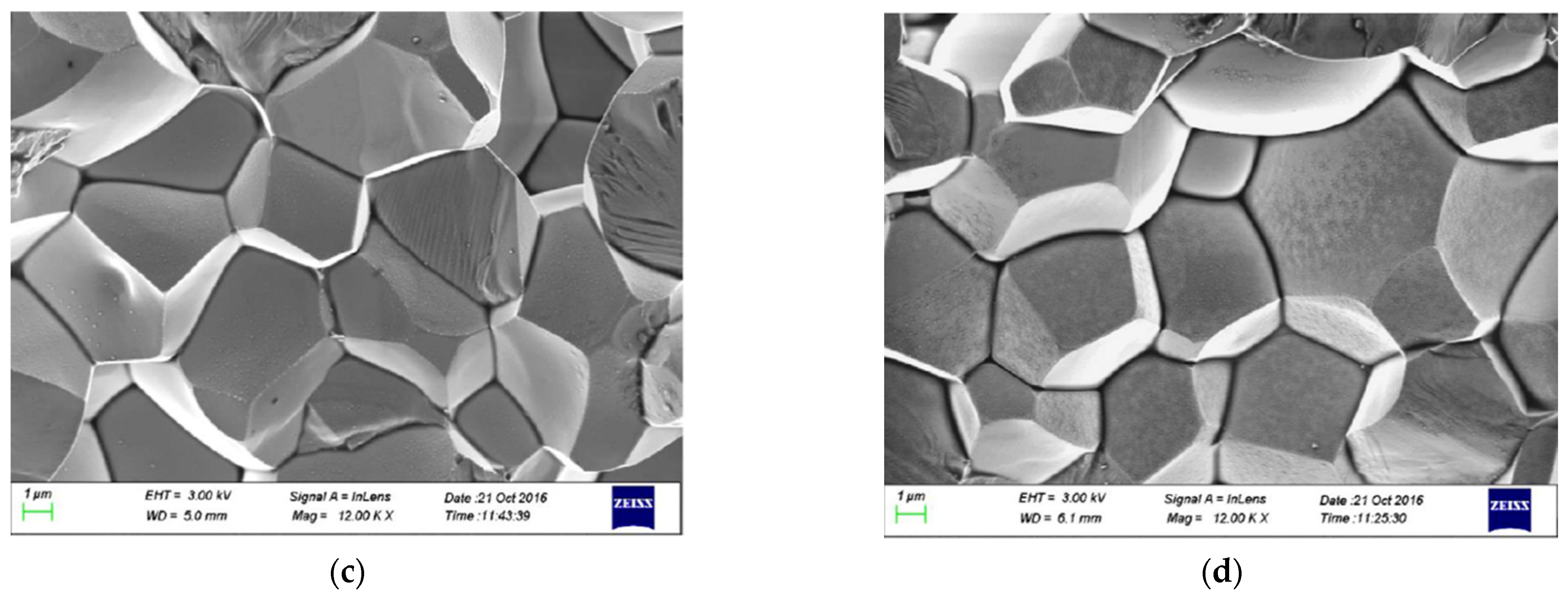 - Pramanika, R.; Sahukarb, M.K.; Mohanc, Y.; Praveenkumard, B.; Sangaward, S.R.; Arockiarajana, A. Effect of grain size on piezoelectric, ferroelectric and dielectric properties of PMN-PT ceramics. Ceram. Int. 2019, 45, 5731–5742. [Google Scholar] [CrossRef]
