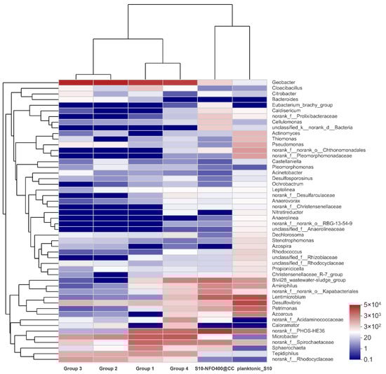 The heatmap of the most abundant genera for anode biofilm in different groups.