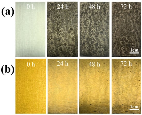 The conversion solution is composed of 0.1 M potassium permanganate (KMnO4) and 0.25 M cerium nitrate (Ce(NO3)3) and was adjusted to a pH = 1.5 with H2SO4 [33,34,35]. Acid pickling pretreatment of the specimens removes the hydroxide/oxide layer [42,43,44]. When the specimens are immersed in a concentrated acid solution, the substrate surface dissolves rapidly and is exposed to the conversion coating bath. After conversion coating, the specimens were immediately rinsed thoroughly with deionized water and dried in a stream of air at room temperature.