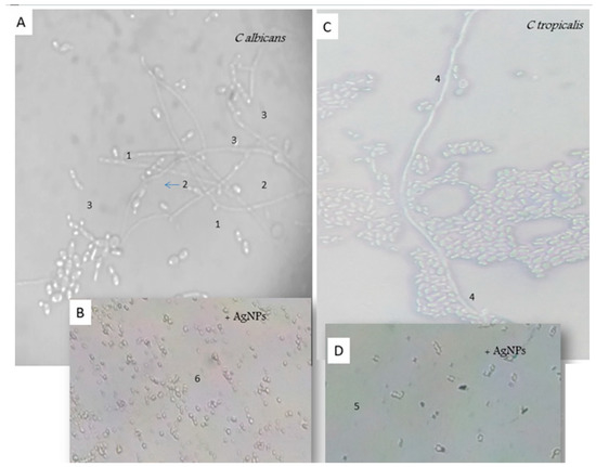- Jalal, M.; Ansari, M.A.; Alzohairy, M.A.; Ali, S.G.; Khan, H.M.; Almatroudi, A.; Siddiqui, M.I. Anticandidal activity of biosynthesized silver nanoparticles: Effect on growth, cell morphology, and key virulence attributes of Candida species. Int. J. Nanomed. 2019, 14, 4667–4679. [Google Scholar] [CrossRef]