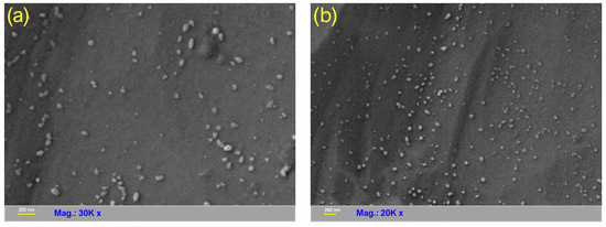 HR-SEM micrographs (a) 30 K magnification and (b) 20 K magnification recorded the prepared CDs.