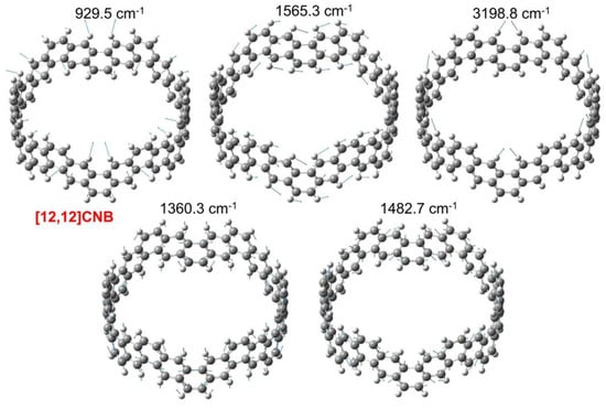 Vibration modes of [12,12]CNB at 929.5, 1360.3, 1482.7, 1565.3, and 3198.8 cm−1.