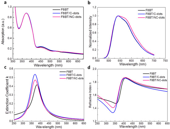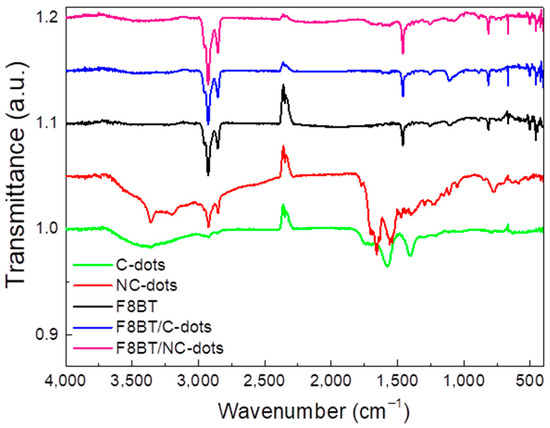 3.1. Characterization of Carbon Dots and F8BT/Carbon Dot Interfaces