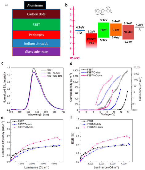 - Dailey, S.; Halim, M.; Rebourt, E.; Horsburgh, L.E.; Samuel, I.D.W.; Monkman, A.P. An Efficient Electron-Transporting Polymer for Light-Emitting Diodes. J. Phys. Condens. Matter 1998, 10, 5171–5178. [Google Scholar] [CrossRef]