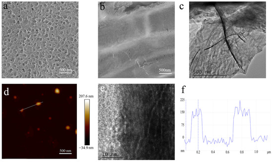 (a,b) SEM images of pore-rich PNCFs before and after PECVD; (c,d)TEM images of the graphene shell in the pore-rich PNCFs@graphene; (e) AFM image of the graphene shell; (f) cross-section analysis is based on the chosen line.