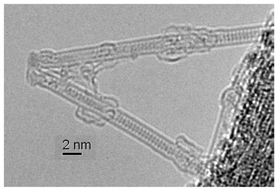 - Smith, B.W.; Luzzi, D.E. Formation mechanism of fullerene peapods and coaxial tubes: A path to large scale synthesis. Chem. Phys. Lett. 2000, 321, 169–174. [Google Scholar] [CrossRef]