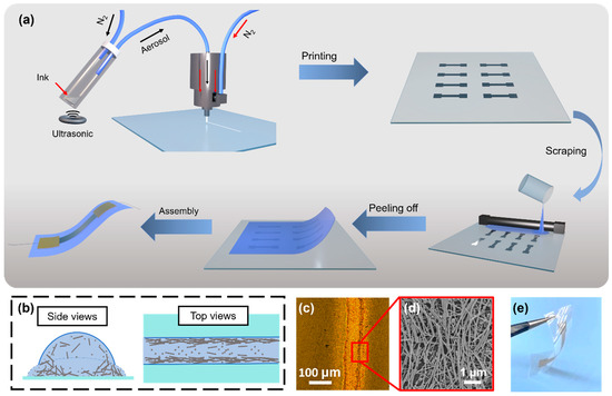 - Goh, G.L.; Agarwala, S.; Yeong, W.Y. Aerosol-Jet-Printed Preferentially Aligned Carbon Nanotube Twin-Lines for Printed Electronics. ACS Appl. Mater. Interfaces 2019, 11, 43719–43730. [Google Scholar] [CrossRef]