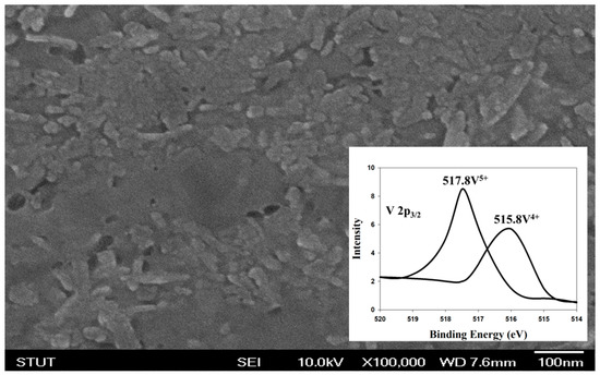 The micro-structure of the vanadium oxide thin films from the SEM surface morphology and XPS results.