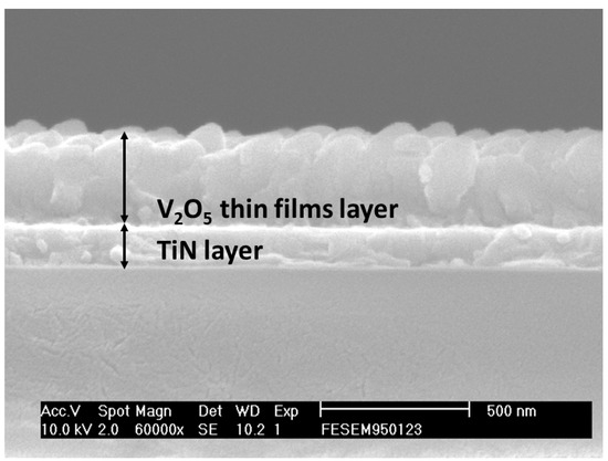 The cross-sectional images of the vanadium oxide thin films from RRAM devices.