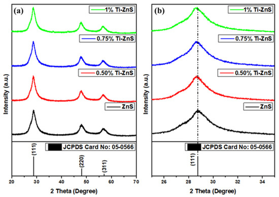 - Jafari-Rad, A.; Kafashan, H. Preparation and Characterization of Electrochemically Deposited Nanostructured Ti-Doped ZnS Thin Films. Ceram. Int. 2019, 45, 21413–21422. [Google Scholar] [CrossRef]