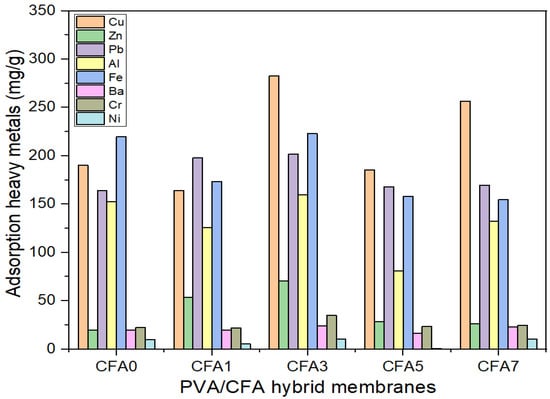 3.5. Heavy Metals Adsorption Capacity Analysis