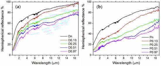 Hemispherical reflectance spectra—(a) dense and (b) porous samples.