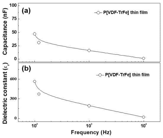 The obtained dielectric constant values of the post-heated P[VDF–TrFE] thin film presented in Figure 7.