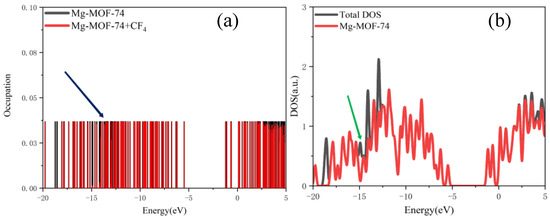 - The orbital occupation of Mg-MOF-74 after adsorbing CF4 gas is shown in Figure 8a–c.