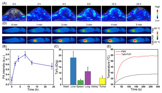 3.2. Photothermal Property and PAI of TaN-PVP NPs