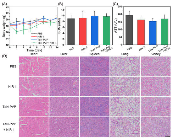3.5. PTT Effect of TaN-PVP NPs In Vivo