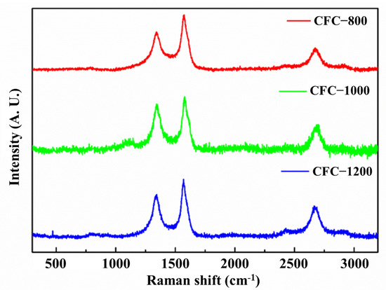 Raman spectra of CFC-800, CFC-1000, CFC-1200 samples.