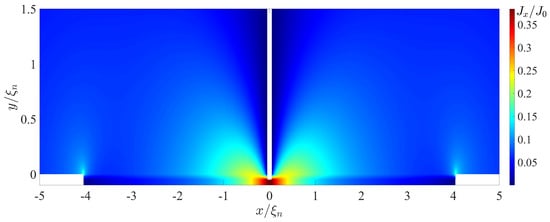 This difference is significantly manifested at the boundaries of materials with weak coupling regions, leading to the possible generation of subdominant order parameters and spontaneous currents [,,,,,]. However, these effects should mainly affect the magnitude of the critical current of the structures. The concentration of the current in the electrode region bordering on the concentrating current weak link occurs independently of the differences formulated above. This means that delocalisation of the weak coupling region and the associated changes in the shape of the current–phase relationship are universal phenomena which should take place regardless of whether conventional or high-temperature superconductors are used as electrodes. Finally, it is important to note that there are geometries that result in current being concentrated in the electrodes at boundary surfaces with weak coupling.