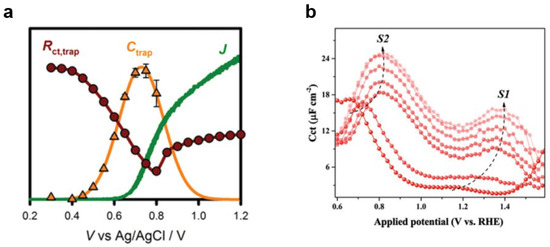 - Klahr, B.; Gimenez, S.; Fabregat-Santiago, F.; Hamann, T.; Bisquert, J. Water oxidation at hematite photoelectrodes: The role of surface states. J. Am. Chem. Soc. 2012, 134, 4294–4302. [Google Scholar] [CrossRef]
