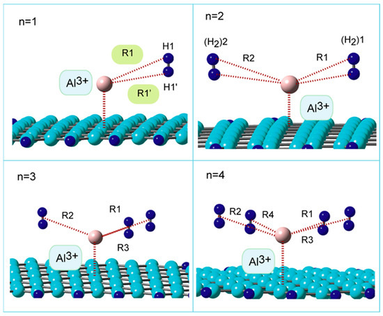 Optimized structures of GR19-Al3+-(H2)n (n = 1–4). The calculations were performed at the CAM-B3LYP/6-31G(d) level.