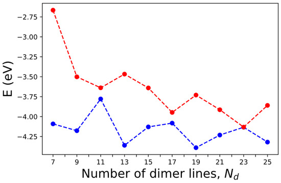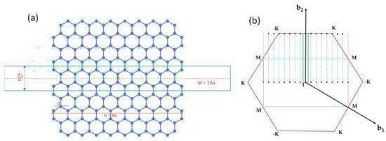 DFT is a widely used computational method for studying the electronic structure of AGNRs [17,18]. DFT calculations provide a first-principles description of the system by solving the Kohn–Sham equations, taking into account the electron–electron interactions within an exchange–correlation functional. DFT calculations can accurately predict the band structure, electronic density of states, and other electronic properties of AGNRs. However, DFT calculations can be computationally demanding, particularly for larger AGNR systems, and certain approximations within the exchange–correlation functional can introduce errors in the result.