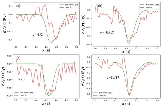 To determine this contribution, we fit the difference of the local potential obtained by DFT and by SEP, i.e., in Figure 3c by the following analytic function: