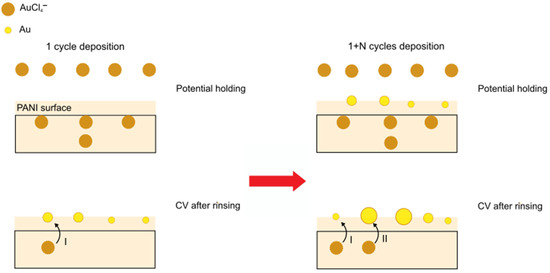12. Jonke, A.P.; Josowicz, M.; Janata, J.; Engelhard, M.H. Electrochemically Controlled Atom by Atom Deposition of Gold to Polyaniline. J. Electrochem. Soc. 2010, 157, P83. [Google Scholar] [CrossRef]